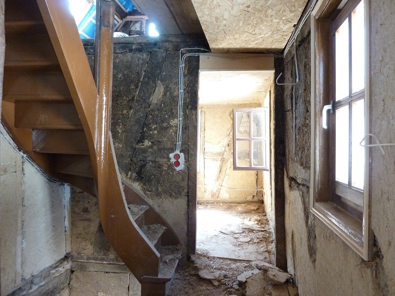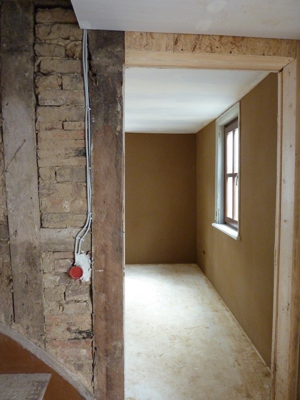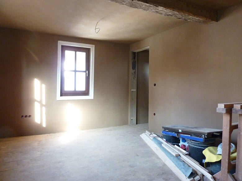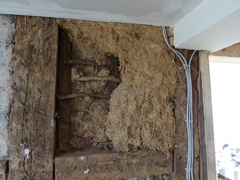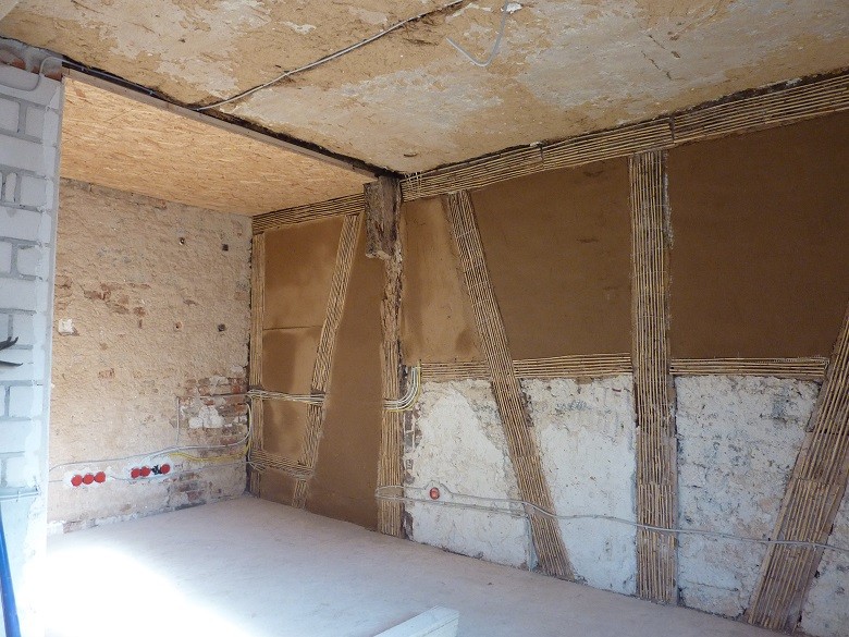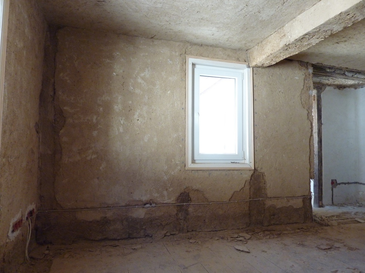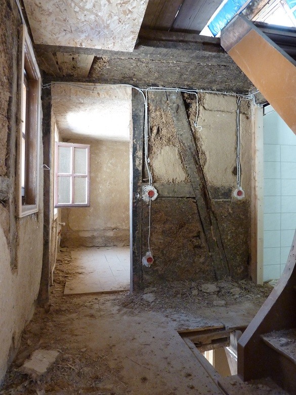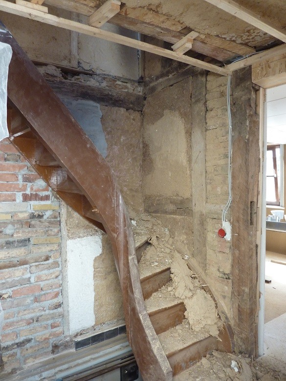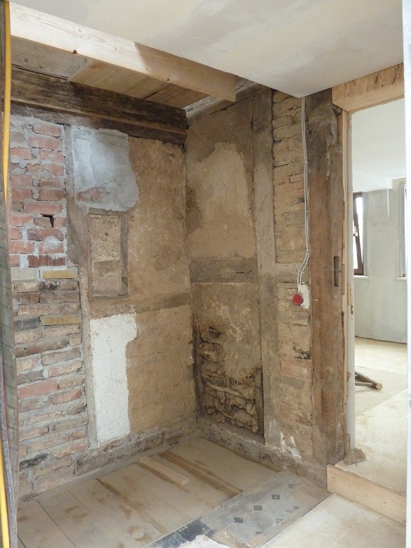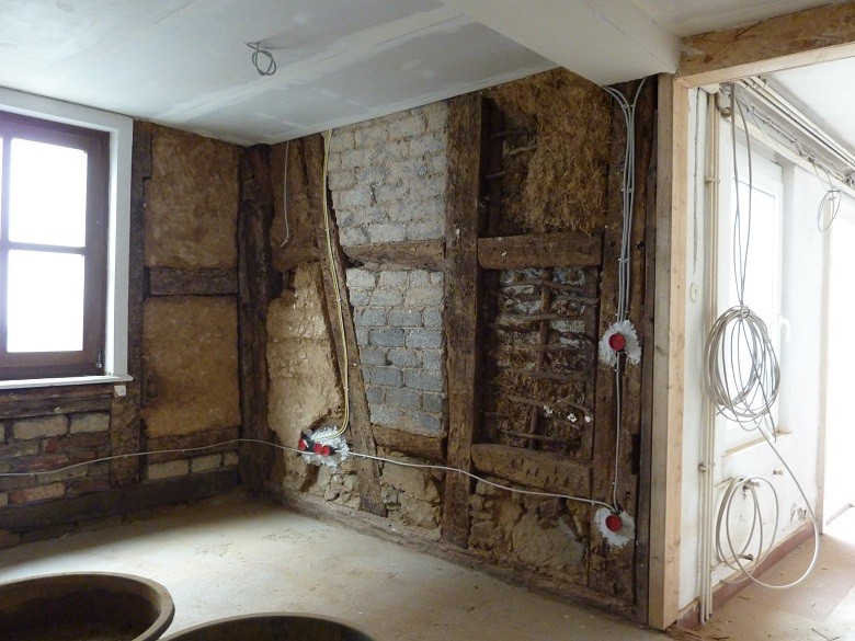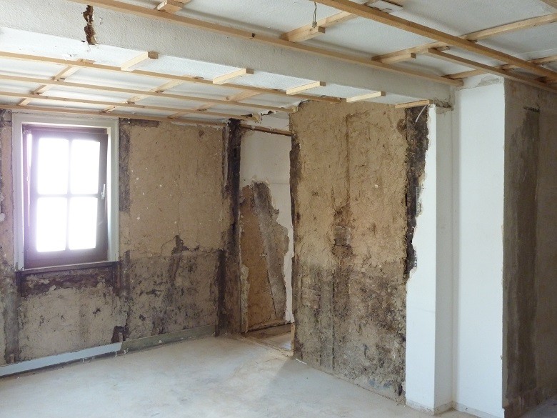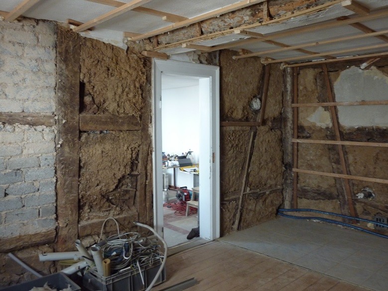 Hier ist gut zu erkennen, weshalb bei der Altbausanierung der Bedarf an Lehmputz schwer vorhersehbar ist.